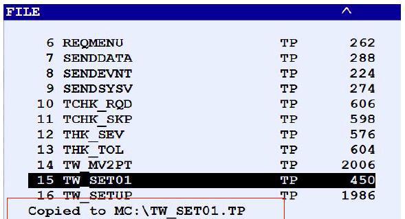 屏幕中出现“Load MC: TW_SET01.TP?”(TW_SET01.TP 文件要载入吗?) F4 【YES】(执行):确认