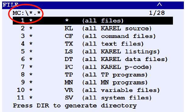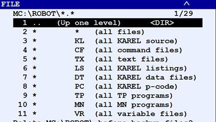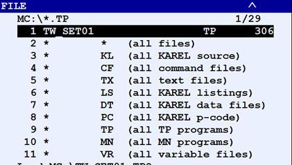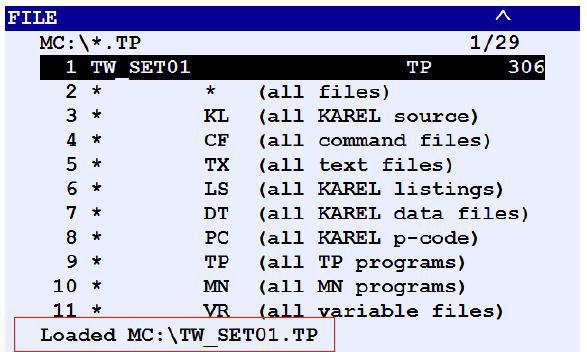 文件是数据在机器人控制柜存储器内的存储单元。 控制柜主要使用的文件类型有: 1)程序文件(*.TP)