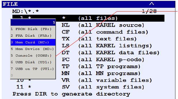 (2)选择文件,按 F2【DIR】,出现各种文件类型,如下画面: