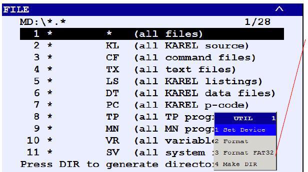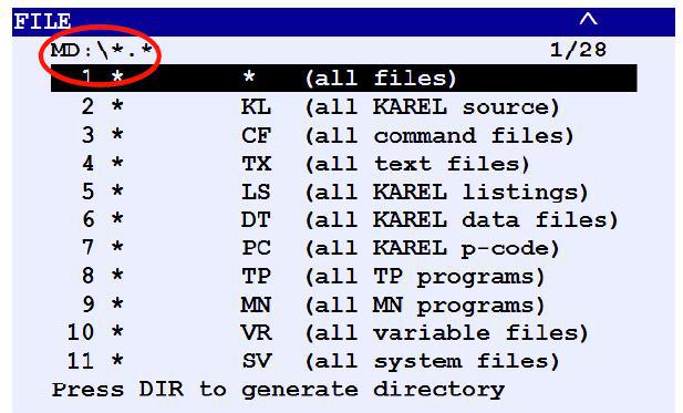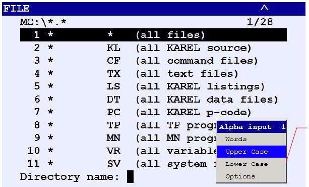 (5)移动光标选择输入类型,用 F1 到 F5 或数字键输入文件夹名(Eg:ROBOT),按