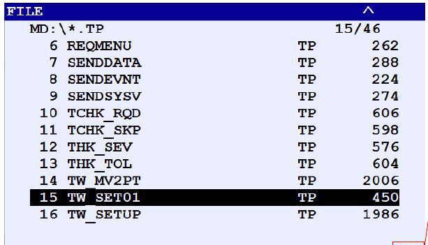 (2)选择文件,按 F2【DIR】,出现各种文件类型之后,选择*.TP,按【ENTER】(回车) 出现 TP 文件画面如下: