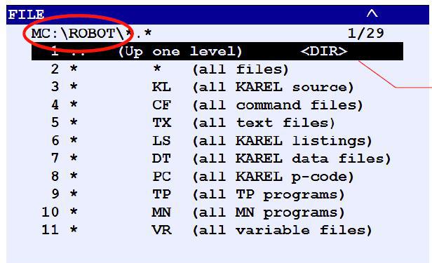 目前路径为: MC\ROBOT\,把光标移 至(Up one level(返 回上目录) 行,按